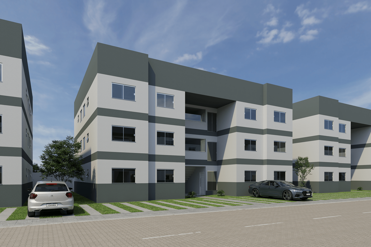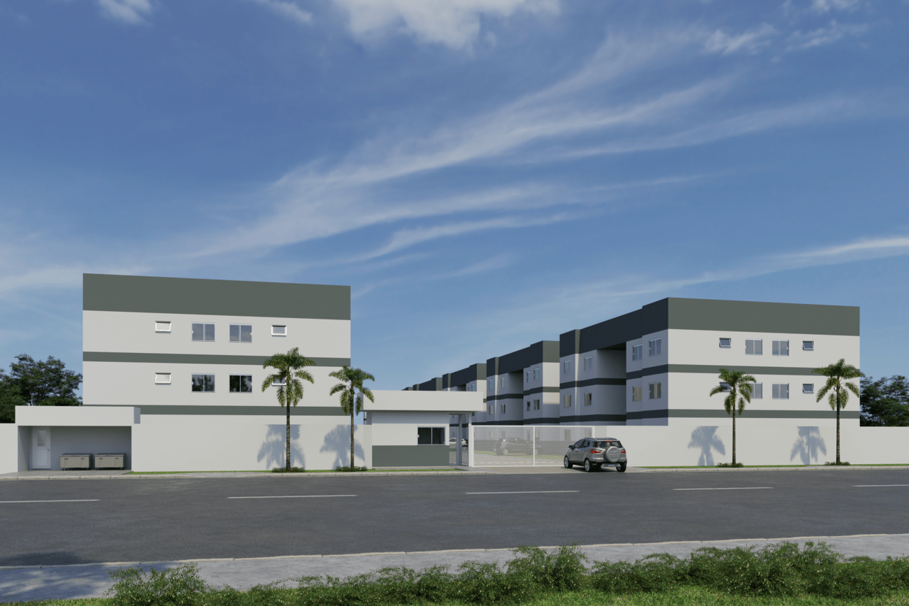 Unidade padrão: 02 quartos, 01 sala estar/jantar, 01 cozinha, e 01 banheiro.